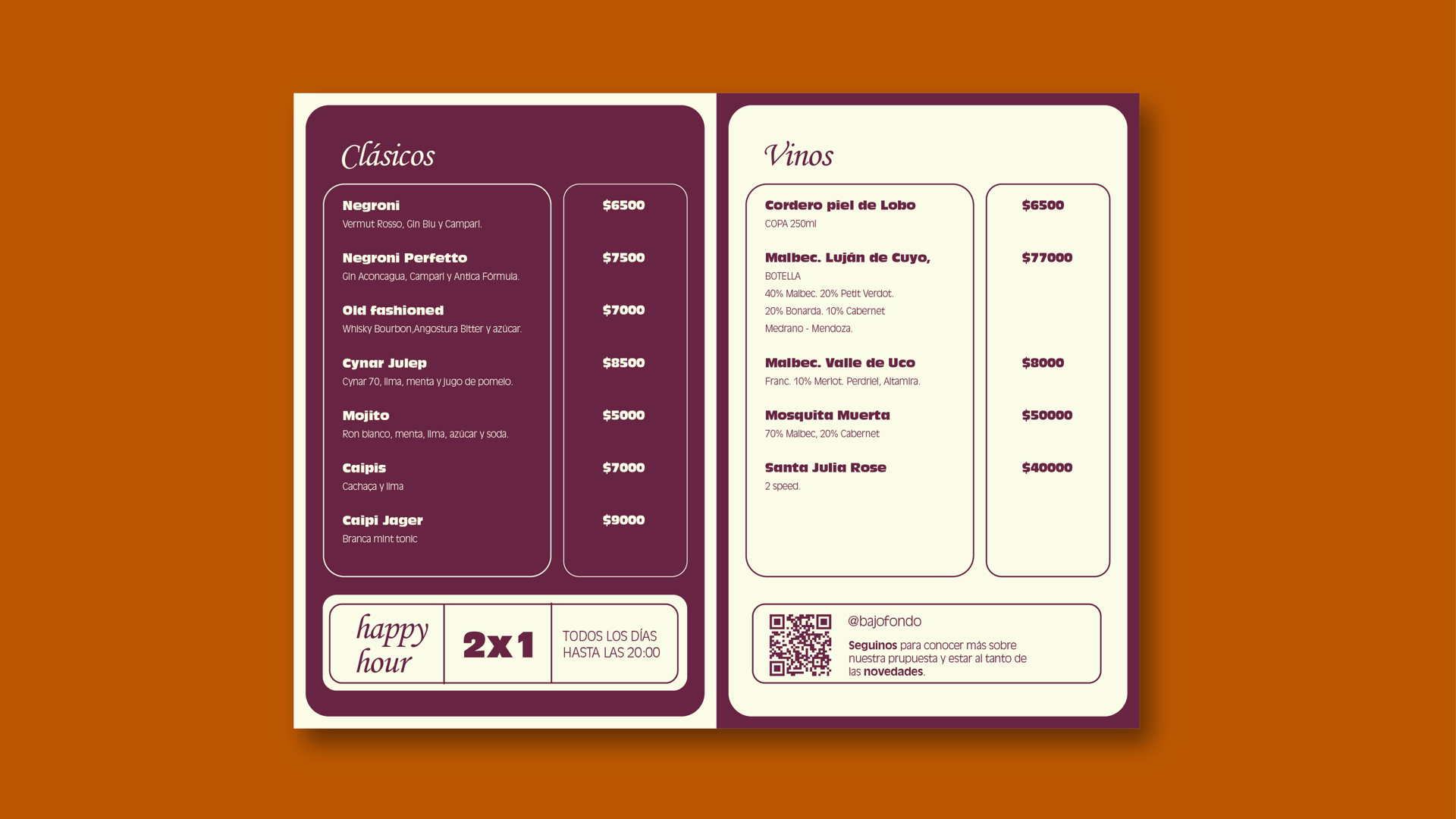Bajo Fondo es de esos bares que no solo están para tomar algo, sino para quedarse, charlar y conectar. Cada trago, cada rincón, cada playlist está pensado para que la noche fluya sin esfuerzo. Cuidan cada detalle, desde la selección de sus tragos hasta el diseño del espacio. Porque para ellos, el buen gusto no es solo lo que se bebe, sino lo que se vive.