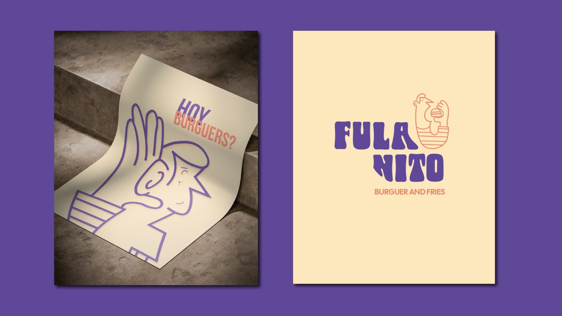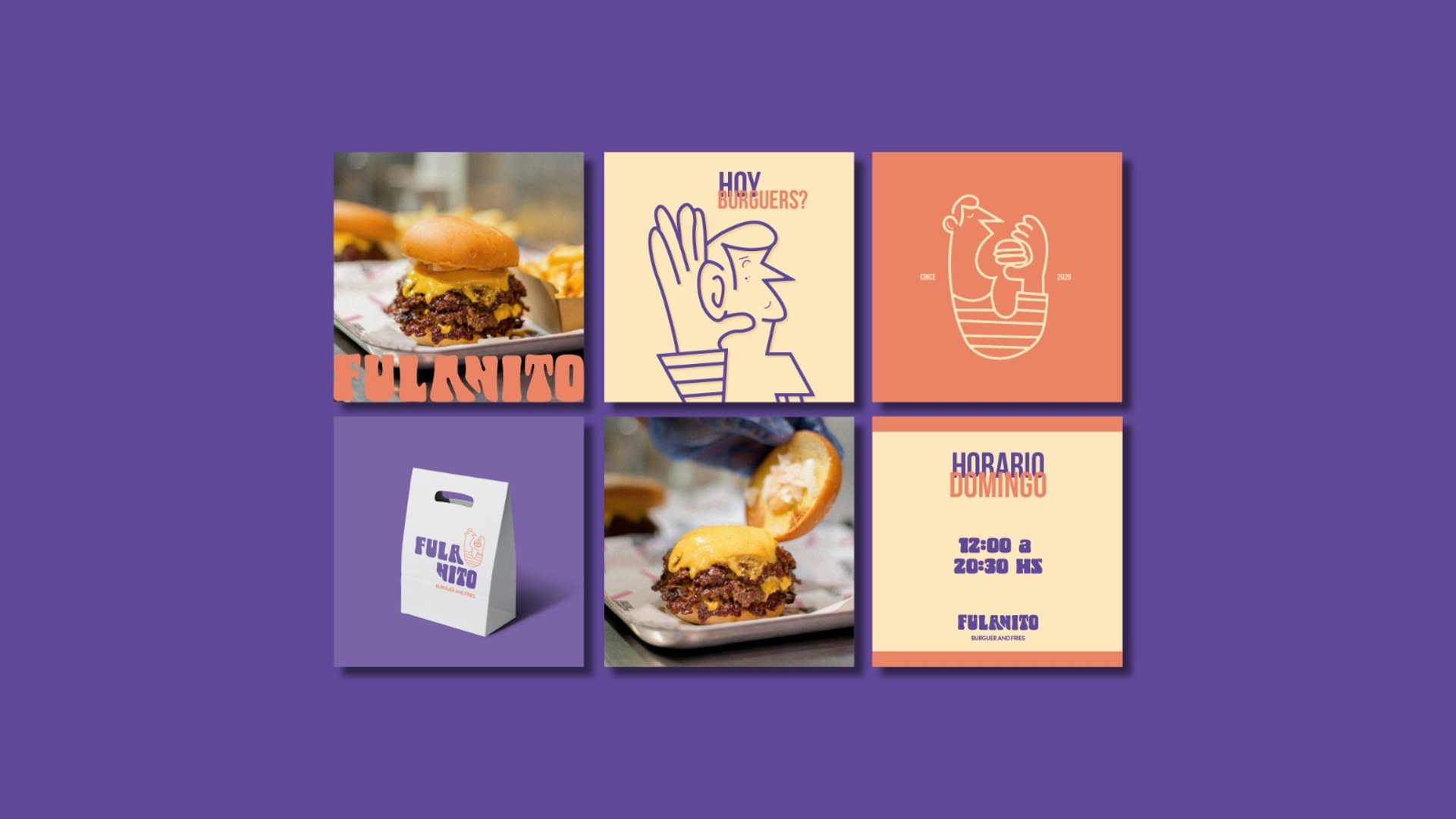 Fulanito nace con una identidad que se sale de lo común: colores fuertes que transmiten energía y personalidad, acompañados por un universo de ilustraciones que marcan estilo. Una propuesta gráfica super canchera que refleja el espíritu de la marca y le da a cada burger un sello único, fresco y con mucha onda.